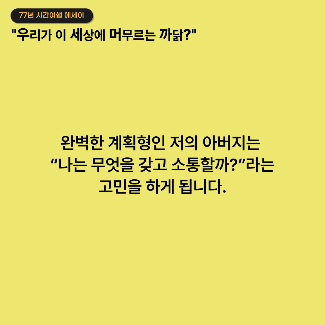 <77년 시간여행 에세이> "우리가 이 세상에 머무르는 까닭?"은