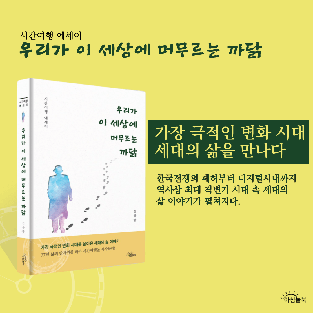 | <아침놀북>"우리가 이 세상에 머무르는 까닭"의 김상량 작가 소개⑤ (0) | 2023.10.18 |