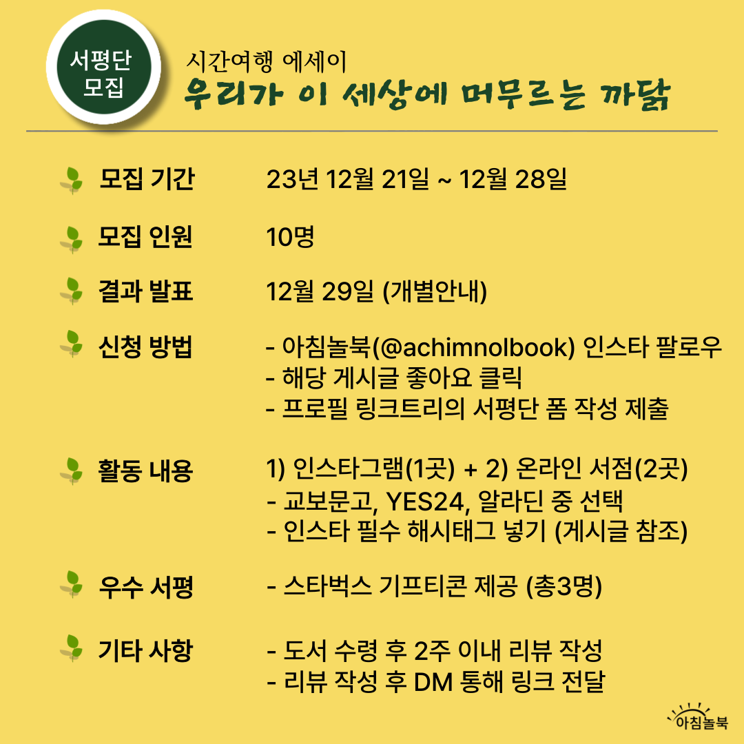 아침놀북에서 '우리가 이 세상에 머무르는 까닭' 출간기념 서평 이벤트를 진행합니다.😊