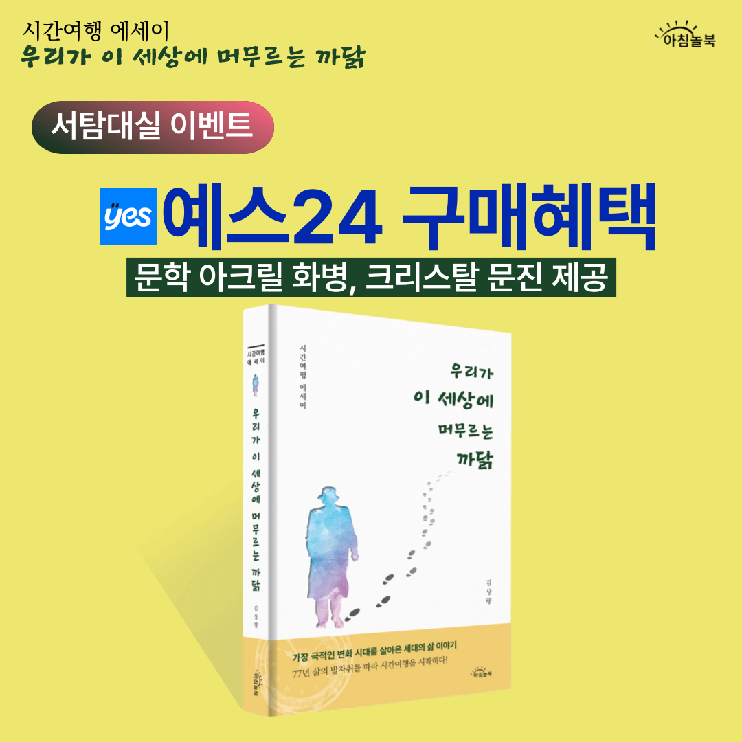 | [아침놀북X교보문고 도서 이벤트] '우리가 이 세상에 머무르는 까닭' 구매 이벤트 (0) | 2024.01.29 |