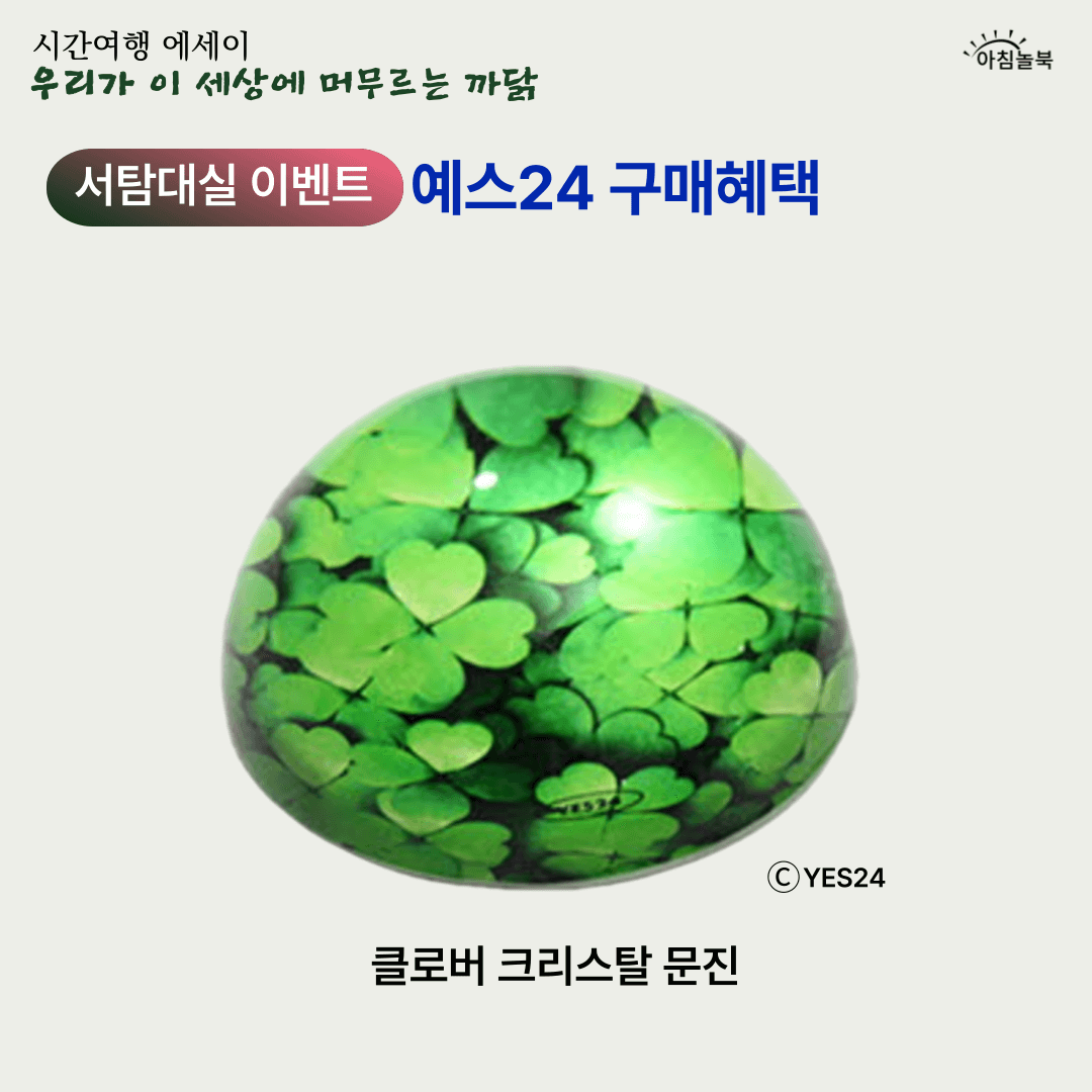 | [아침놀북 X 예스24 도서 이벤트] 귀여운 신이어마켙 북파우치에 '우리가 이 세상에 머무르는 까닭' 책을 담아 시간여행을 떠나세요! (0) | 2024.04.29 |