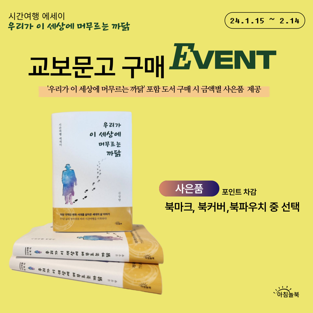 | [아침놀북X예스24 도서 이벤트] '우리가 이 세상에 머무르는 까닭' 구매이벤트 (0) | 2024.01.24 |