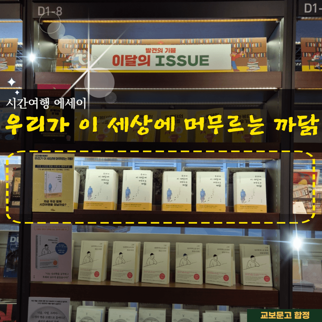 교보문고 합정 "이달의 ISSUE 코너"에서 시간여행 에세이<우리가 이 세상에 머무르는 까닭>을