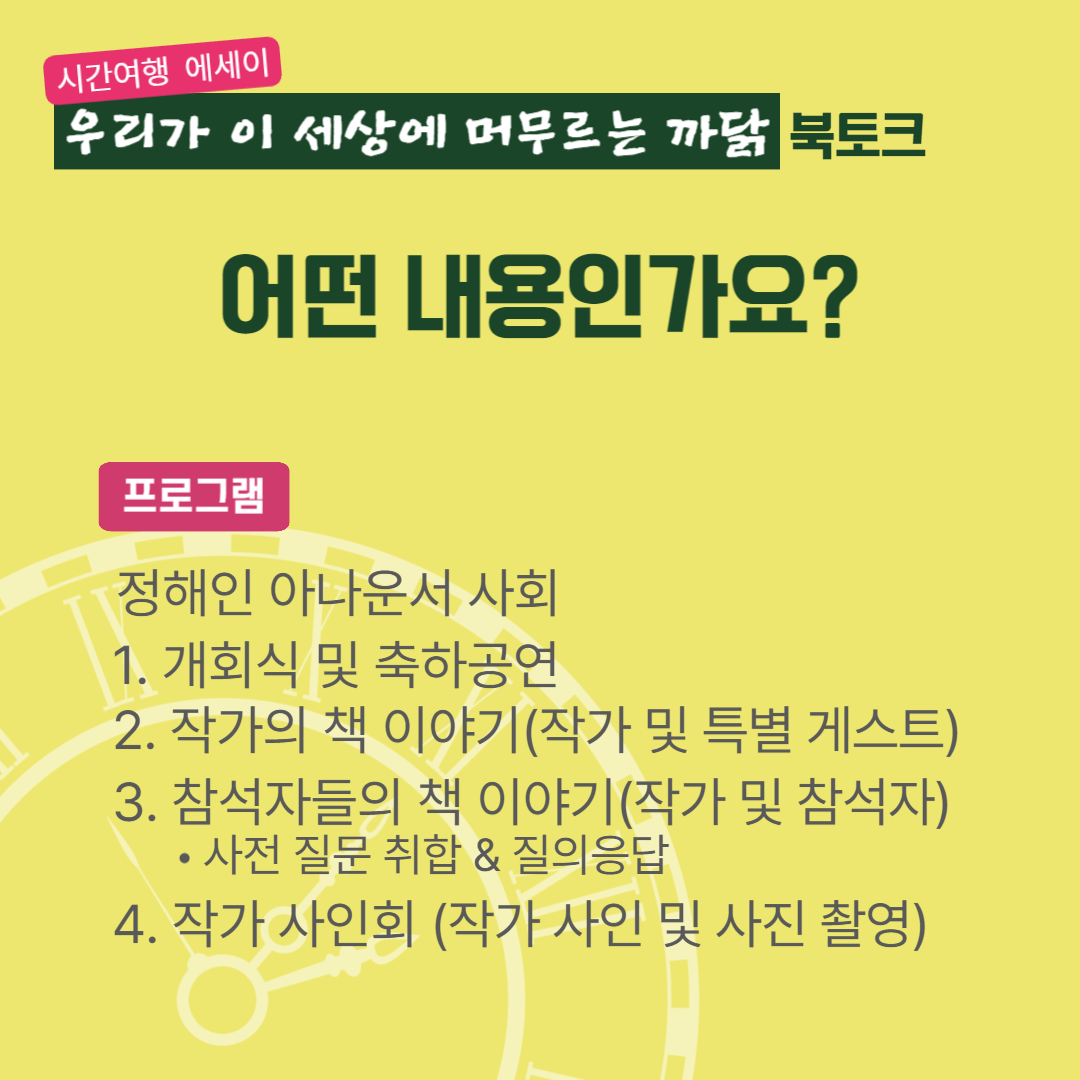 우리가 이 세상에 머무르는 까닭 북토크 신청하고 시간여행 떠나요!