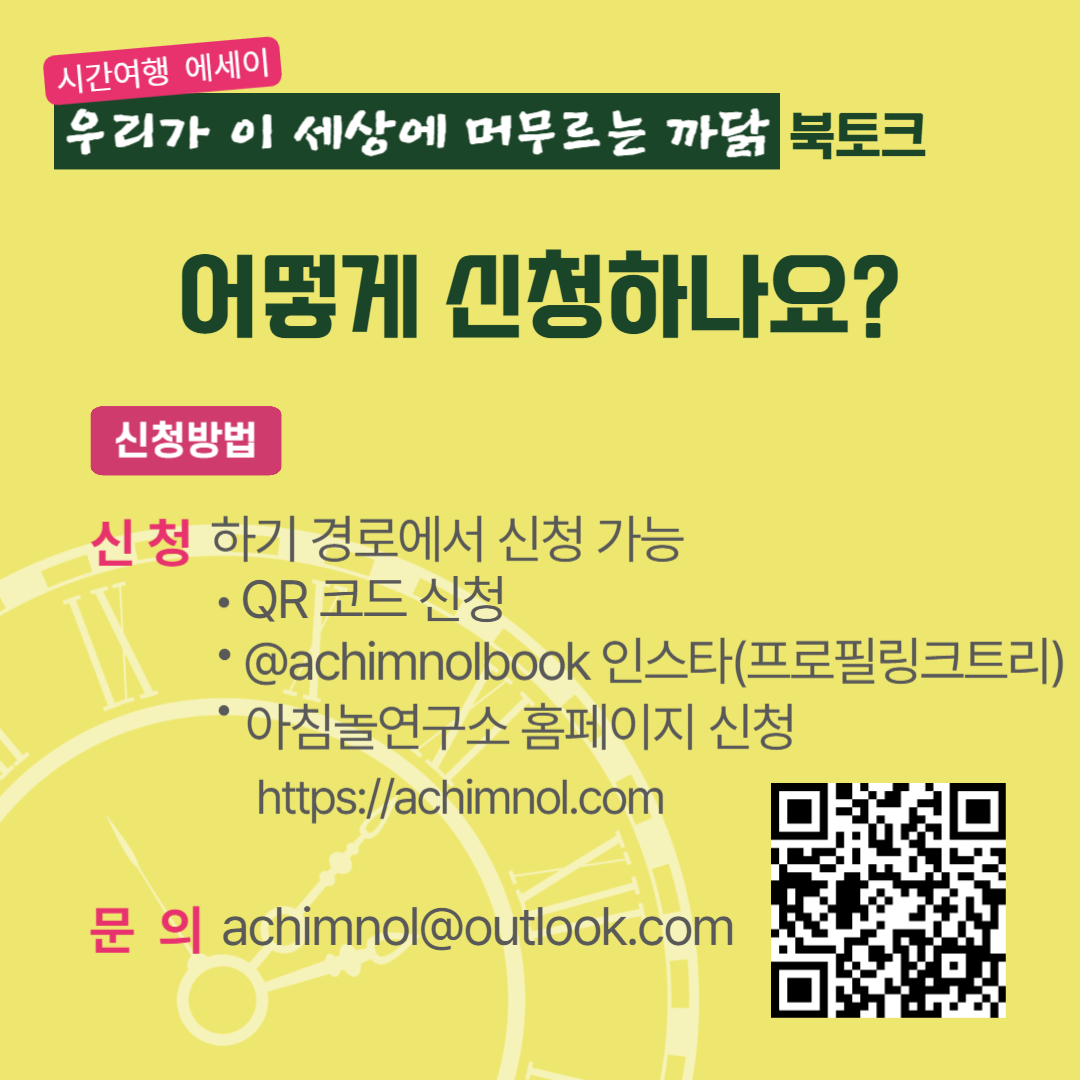 | [아침놀북] 우리가 이 세상에 머무르는 까닭 북토크가 선물하는 시간여행! (0) | 2024.05.29 |