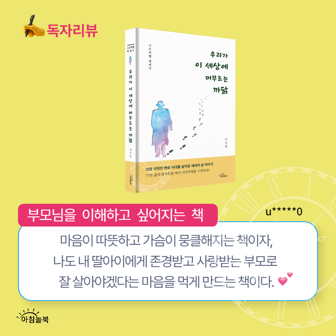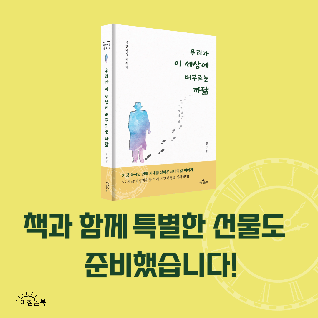 5월 가정의 달! 여러분들은 사랑하는 이들을 위해 무엇을 선물하셨나요? 아직 고민중이시라면 <시간여행 에세이> 우리가 이 세상에 머무르는 까닭과 함께 하세요! 책과 함께 특별한 선물도 준비되어있습니다.🥳