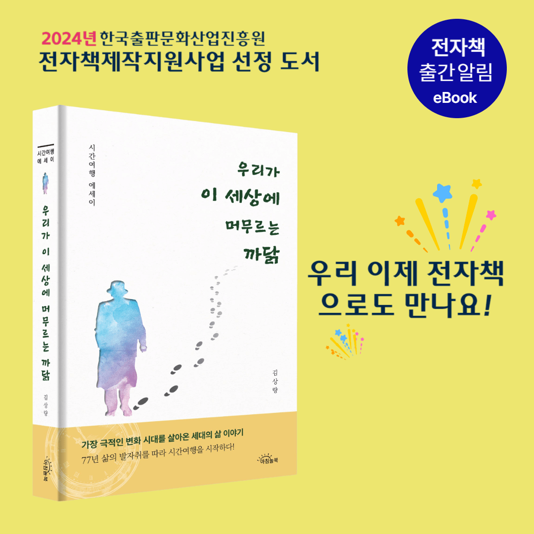 | [아침놀북] 우리가 이 세상에 머무르는 까닭ㅣ한국출판문화산업진흥원 전자책 제작 지원 사업 선정 (0) | 2024.06.13 |